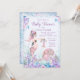 Invitaciones para baby shower de sirena con adorable madre sirena embarazada sosteniendo un traje de bebé sirena en un hermoso fondo azul turquesa y púrpura bajo el mar. Esta invitación de baby shower de sirena se personaliza fácilmente para su evento simplemente agregando sus detalles.