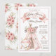 Invitaciones para baby shower de niña con zorro tribal bebé y teepee en un precioso fondo floral rosa acuarela. Estas lindas invitaciones para baby shower tribales se personalizan fácilmente para su evento simplemente agregando sus detalles.