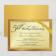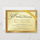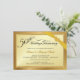 Cree sus propias invitaciones personalizadas para la fiesta del 50º aniversario de bodas: un hermoso borde con acabado metálico dorado sobre un marco dorado claro con cinta dorada impresa y corazón de piedra preciosa dorada. Tipografía clásica con aspecto grabado y letras en escritura florida con estilo vintage elegante: lujo elegante, asequible y único para usted. Simplemente agregue los nombres, la fecha y los detalles para la celebración de su aniversario de bodas. **NOTA: Todos los elementos de este diseño son parte de la imagen impresa: la cinta, el broche con joyas y el marco NO están levantados, grabados ni presentados como adornos reales. Tamaño adecuado para tarjetas de invitación pequeñas. Haga clic en "Personalizar" para cambiar el tamaño, las opciones de papel o las opciones de fuente. Otros tamaños y estilos disponibles en la galería. © Teri Francis. Conjuntos coordinados con