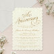 Celebre medio siglo de amor y devoción con una invitación que irradia sofisticación atemporal. El diseño captura perfectamente la grandeza de un aniversario de bodas de oro, manteniendo un toque delicado y romántico. El titular "50th Anniversary" está representado en una impresionante escritura dorada que imita el aspecto de brillo real, sobre un sutil fondo con patrón de damasco marfil. Una mezcla reflexiva de caligrafía elegante y fuentes clásicas serif garantiza que los detalles de su evento sean hermosos y fáciles de leer. Esta plantilla está redactada específicamente para incluir una renovación de votos, lo que la convierte en una opción perfecta para parejas que se comprometen de nuevo después de 50 años maravillosos. Actualice fácilmente los nombres, fecha, lugar y la información de RSVP para adaptarla a su celebración específica.