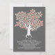 Invitación nupcial moderna pero vintage con un árbol floreciente y sus raíces únicas forman el corazón del amor. Ideal para los amantes de los grises, los corales o los bodas rosados con un antiguo arbolado. — Todos los elementos de diseño creados por Jinaiji