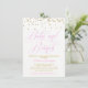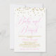 Invitaciones para brunch de revelación de bebé niña con letras elegantes de bebé y brunch en un fondo de purpurina dorada. Esta invitación para brunch de revelación de bebé niña en rosa y dorado se personaliza fácilmente para tu evento simplemente agregando tus detalles en el estilo de letra y color y redacción de tu elección. También puedes cambiar el color de fondo a lo que prefieras. Este es un diseño impreso sin purpurina real.