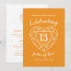 Invitaciones sencillas de aniversario de bodas de citrino naranja y blanco con efecto de piedra de corazón delineado con arte de línea gráfico para 13 años. Personalice con los detalles de su fiesta de bodas decimotercera. El 13º Aniversario está asociado con la gema citrino y el corazón simboliza el amor. Gráficos y diseño de Sarah Trett para www.mylittleeden.com en Zazzle.