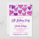 Invitaciones para cumpleaños 68 con patrón de corazón glam rosa