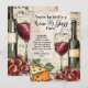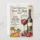 Tarjetas de invitación de vino y jazz modernas y elegantes con hermosas notas musicales artísticas, diseño temático de queso, vino y jazz. Genial para celebrar una divertida noche de chicas en casa, cóctel social o ocasión especial personal. Arte estilo acuarela con fondo de botella, vaso y muestra de queso suizo. Personalice en línea con los detalles de su evento.