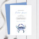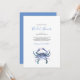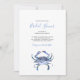Crea olas con estas invitaciones de despedida de soltera de playa de Do Tell A Belle, una encantadora opción para invitaciones de despedida de soltera costeras y temas de despedida de soltera que adorarán los amantes de la playa. Con un cangrejo pintado a mano en acuarela azul sobre un fondo blanco crujiente con un dorso azul coordinado, este diseño combina la elegancia costera con la diversión veraniega.