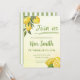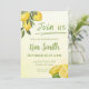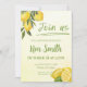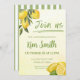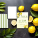 Esta invitación de ducha de limón fue inspirada por la luminosidad y simplicidad de los limones. Más conocidos por anunciar que el verano está aquí mientras esparcen un poco de sol por donde van, esta invitación de limón muestra la naturaleza brillante de un limón mientras rinde homenaje al sabor que agrega a una variedad de cosas, ¡al igual que tu motivo de celebración! Con limones colgando de una rama y descansando en una esquina, estas deliciosas frutas rodean una colección linda, femenina y sofisticada de fuentes verdes naturales que la convierten en la adición perfecta para tu ducha de bebé o de novia. Un fondo amarillo de acuarela une la apariencia para un estallido de sol y felicidad.