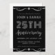 Celebra tu 25º aniversario con estilo con estas elegantes y simples invitaciones de plata. Perfecto para un evento temático moderno o para una ceremonia de renovación de votos, estas invitaciones presentan un diseño elegante con un toque de brillo plateado.