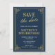 Elegantes invitaciones para el 39 cumpleaños Hombres Save the date Navy Gold chic moderno
