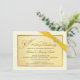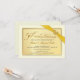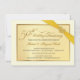 Cree sus propias invitaciones personalizadas para la fiesta del 50º aniversario de bodas: un hermoso marco de color marfil beige con borde dorado metálico, acompañado de una cinta dorada impresa y un corazón de piedra preciosa dorada. Tipografía clásica con estilo grabado y letras adornadas con florituras en estilo vintage: lujo elegante y asequible, y diseñado de manera única para usted. Simplemente agregue los nombres, la fecha y los detalles para celebrar este hito especial de aniversario. **NOTA: Todos los elementos de este diseño son parte de la imagen impresa; la cinta, el broche de joyas y el marco NO están en relieve, ni son adornos reales. Tamaño adecuado para tarjetas de invitación pequeñas. Haga clic en "Personalizar" para cambiar el tamaño, las opciones de papel o las opciones de fuente. Otros tamaños y estilos disponibles en la galería. © Teri Francis. Conjuntos coordinados con est
