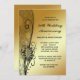 Elegante invitación de aniversario 50 con remolino floral negro y dorado. Esta bonita invitación de aniversario de bodas de oro es fácilmente personalizable para su evento agregando los detalles del evento, estilo de fuente, tamaño y color de la fuente y redacción.