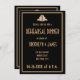 Invitaciones para cena de ensayo de boda Art Deco negro y dorado de Great Gatsby con texto personalizable