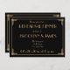 Invitaciones para cena de ensayo de boda con arte deco de Gran Gatsby en negro y dorado con texto modificable