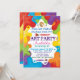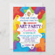Invitaciones de fiesta de arte con texto colorido y pintura de colores de arcoíris y pinceles. Puedes personalizar fácilmente estas invitaciones de fiesta de arte para tu evento simplemente agregando tus detalles. También puedes cambiar el color de fondo.