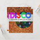 Zapatos de tacón alto de bola de espejo invitaciones para fiesta de baile disco. Plantilla de invitación para fiesta de bola de disco.
