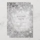 Invitaciones para fiesta de copos de nieve de invierno plateados y blancos. Personalice para cualquier evento.