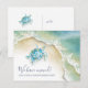Bienvenidos a sus seres queridos a su nuevo hogar con nuestras impresionantes invitaciones para fiestas de inauguración de casa, diseñadas exclusivamente por Victoria Grigaliunas de Do Tell A Belle. Con un exquisito arte de tortugas marinas en acuarela en tonos de azul turquesa y verde azulado, estas invitaciones estilo postal capturan perfectamente la esencia de la vida costera y el ambiente veraniego.