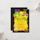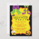 Invitaciones de fiesta de Halloween con pies de disfraz de Halloween lindos, pastelito, dulces y calabaza en un fondo de color a su elección. Esta invitación divertida y no aterradora para fiesta de Halloween para niños se personaliza fácilmente para su evento simplemente agregando sus detalles.