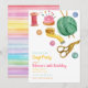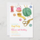 Invitaciones para fiesta de manualidades. Este divertido diseño está creado con tijeras, hilo y lana sobre un fondo blanco. El fondo del diseño se establece en blanco, pero se puede cambiar a cualquier color que prefiera. Suministros y decoraciones adicionales para fiestas están disponibles en Metro-Event.com y Metro-Events en Zazzle.