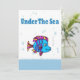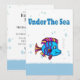 Haga un chapuzón con estas frescas invitaciones a la fiesta de cumpleaños de pescado. La invitación tiene un pez azul y las palabras Bajo el mar. Utilice nuestra plantilla para hacer una invitación de cumpleaños personalizado.