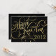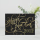 Invitaciones a la Fiesta de Nochevieja — Elegante y audaz, pero divertido y festivo en espíritu — Fancy gold script con audaces giros de moda sobre fondo negro. Este elegante y sofisticado diseño se puede personalizar fácilmente para fiestas de cena formales, fiesta de cócteles o celebraciones de vacaciones informales en la casa abierta. Simplemente introduce tu información para crear tus propias y modernas invitaciones personalizadas para cualquier evento especial de Año Nuevo. Estampillas, postales, botones, pegatinas y regalos a juego disponibles en la galería.