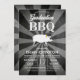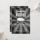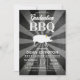 Invitaciones a barbacoa de graduación en blanco y negro con gorra de cerdos y graduados. Perfecto para una fiesta de graduación. El tablero de ajedrez resbaló el fondo. Fácil de personalizar.
