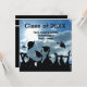 Invitaciones para graduación escolar con una gran foto del cielo azul con la luz del sol y áreas de texto que usted puede personalizar para hacerlo personal. También hay una clase de graduación con gorro y vestido lanzando sus gorras al aire en celebración lo que hace de esto una gran invitación a la fiesta para la escuela secundaria, la universidad, la escuela secundaria o la escuela secundaria. Diseñado para chicos o chicas, usted va a hacer un gran chasquido fiesta con esta invitación de graduado genial.