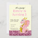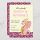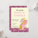 Invitaciones redondeadas de la impresión de cumpleaños con ilustracion de un lindo dragón rosa; invitación de cumpleaños con temática de fantasía ilustrada por Maxi Harmony