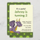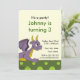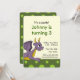 Impresión de la fiesta de cumpleaños invita a los niños con ilustracion de un lindo dragón morado en un patrón de puntos polka verde, diseño para niños ilustrado por Maxi Harmony