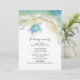 Honre una vida hermosa con estas invitaciones personalizables para la celebración de la vida, diseñadas utilizando arte original de acuarela pintada a mano por Victoria Grigaliunas de Do Tell A Belle. Este diseño muestra una costa y una tortuga marina pacífica, evocando una sensación de calma y belleza natural, perfecto para un memorial en la playa o un tributo tropical.