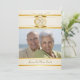 Invitaciones personalizadas elegantes para la fiesta de aniversario número 50 -- acentos decorativos dorados vintage sobre fondo marfil con marco de foto y monograma clásico antiguo. Agrega tu propia foto y personaliza el nombre, fecha y detalles para la celebración de tu aniversario de bodas. Sobres a juego, franqueo y tarjetas de agradecimiento disponibles. **NOTA: Tamaño para tarjetas de invitación pequeñas de 4,25 x 5,5 pulgadas. Otros tamaños y estilos disponibles en la galería.