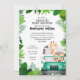 Un vehículo lleno de adorables animales salvajes de la selva y plantas de la jungla, tema perfecto para invitaciones de baby shower para niño, niña o de género neutral. Utilice el enlace Personalizar para cambiar las fuentes, colores de fuente, agregar o eliminar información o cambiar el diseño. Si prefiere papel más grueso, use el papel Mate.