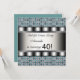 Divertida invitación para la fiesta de cumpleaños número 40 de una mujer con lunares retro turquesas. Personalice la parte delantera y personalice la parte trasera con su elección de estilo de fuente y color de fuente, y color de fondo de la parte trasera.