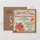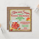 Invitación rústica para la fiesta de tapas y sangría con una jarra de sangría y vaso, rodajas de frutas frescas, aceitunas, salami, quesos y tapas sobre papel vintage contra un fondo de tablones de madera. Ideal para cumpleaños, reuniones, jubilaciones o cualquier fiesta en la que se sirvan tapas y sangría. Ilustración dibujada a mano por McBooboo. Por favor, contácteme con cualquier problema, cambio o pregunta.