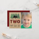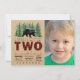Invitaciones para la segunda fiesta de cumpleaños de leñador para niños con oso negro rústico y árboles abetos en acuarela sobre fondo de kraft y cuadros de búfalo. Esta linda invitación de cumpleaños número 2 de leñador con cuadros de búfalo y oso rojo y negro se personaliza fácilmente para su evento simplemente agregando su foto y detalles del evento.