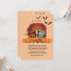 Una divertida invitación de la fiesta de Halloween con la etiqueta de un Zombie sin cabeza con cabeza verde y calabaza además de él.