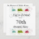 A tus invitados les encantará esta invitación personalizada, multicolor, para la fiesta de cumpleaños número 70. Esta es una invitación perfecta. Sencillo pero festivo, dramático, una invitación de una especie, única, especial y elegante fiesta de cumpleaños 70 es una manera adecuada para celebrar a su invitado de honor el septuagésimo cumpleaños con clase, estilo e individualidad. Esta fiesta de cumpleaños número 70 es de buen gusto y tiene un toque de tradición mientras mantiene un estilo moderno con hermosas fuentes. Perfecto para hombres o mujeres que celebran su fiesta de cumpleaños número 70 en cualquier lugar, como casas, restaurantes, comedores o el patio trasero. Puede personalizar fácilmente los detalles haciendo que esta invitación parezca mucho más costosa que el precio asequible que realmente es. Esta invitación para la fiesta de cumpleaños número 70 es la elección perfecta para el anfitrión o la anfitriona con un presupuesto ajustado. ¡Busca también el correo correspondiente!