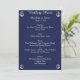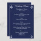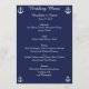 Invitaciones personalizadas de menú de boda náutico azul marino con texto personalizable