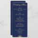Invitaciones personalizadas de menú de boda náutico azul con brújula dorada y texto personalizable