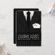 © Sunny Mars Designs - Traje a rayas: Invitación de despedida de soltero con esquinas redondeadas para noche de póquer - Invitación personalizable para fiesta de despedida de soltero con tema de casino de Las Vegas o noche de póquer con traje a rayas negro y gris o traje / esmoquin, corbata negra y camisa blanca con un conjunto de cuatro ases que sobresalen del bolsillo. Personalízalo agregando tu propio nombre y detalles. Puedes cambiar la fuente y el tamaño del texto haciendo clic en el botón "personalizar".