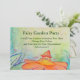 Crea tarjetas de invitación personalizadas de hada de las flores con tu propio texto e imágenes para fantásticas fiestas con tema de hadas. Este diseño de invitación de hada complementa otros diseños de hadas de DonnaBellas para un evento con tema de jardín como un baby shower, despedida de soltera, fiesta de cumpleaños o invitaciones de boda. El arte presenta una hada de flores azul que se aferra a una vid con hojas y flores blancas iridiscentes. Una pequeña hada naranja se asoma por encima de los pétalos de las flores. El arte fue creado con acuarela sobre papel con pastel encima. Para más opciones de diseño adicionales y/o solicitudes personales, por favor contacte info@donnabellas.com.