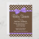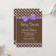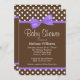 Una invitación púrpura y marrón de moda de la fiesta de bienvenida al bebé. Atracción de lunares blancos y de un gráfico púrpura del arco. Perfeccione para una fiesta de bienvenida al bebé de la niña. ¡Personalice fácilmente! Los diseños son ilustraciones/gráficos impresos plano - CINTA NO REAL.