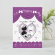 ¡Esta invitación linda del boda de los pares del gato que ofrece 2 gatos, el gato de la novia está llevando un cuello del corazón púrpura y un velo de novia blanco y el gato del novio con un cuello y un sombrero de copa del corazón púrpura con una banda púrpura rodeada flotando los corazones púrpuras rematados con una cortina coloreada púrpura con los arcos blancos!