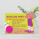 El fiesta retro de las invitaciones de la fiesta de cumpleaños de los bolos del chica, rosado y amarillo de los bolos invita