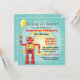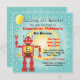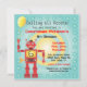 El robot retro rojo lindo estupendo de la conclusión le invita a una fiesta de cumpleaños temática del robot. Emperne el marco en aguamarina y fondo de la diana con el robot detallado que sostiene un globo con el sitio para la edad de su niño en el robot. Dé el ilustracion exhausto de McBooboo.