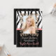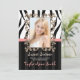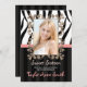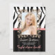Rosa elegante, de moda y de la diversión, invitaciones blancos y negros del cumpleaños de la foto del dulce dieciséis de la cebra que se pueden modificar para requisitos particulares para decir lo que usted quiere. Suprima cualquier texto para dejar el espacio en blanco. Marco adornado, rayas y diseño IMPRESO de la MIRADA de la cinta. El diseño ENCENDIDO INVITA al © Chrissy H. Studios, LLC. Todos los derechos reservados.