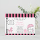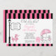 Comiéncele fiesta de cumpleaños del chica de la derecha con nuestras invitaciones rosadas elegantes y elegantes de la fiesta de cumpleaños de los niños del caniche. Nuestro caniche rosado lindo en París invita a características un pequeño caniche rosado lindo con una tabla del café y un toldo del boutique de las rosas fuertes y del negro con la muestra del boutique. La invitación de la fiesta de cumpleaños de los chicas del caniche ofrece un rosa y una parte posterior de coordinación de la raya negra con un caniche francés. Visite nuestra tienda para hacer juego le agradecen las tarjetas de nota, pegatinas del cumpleaños, gracias los pegatinas y los sellos. Diseños de Babystar del ©