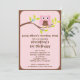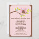 Comience a su fiesta de cumpleaños de los chicas del búho de la derecha con nuestra invitación linda de la fiesta de cumpleaños del búho del bebé que ofrece un búho rosado y marrón bonito que se sienta en una rama de árbol con las flores fijadas en un fondo rosado de la raya y una frontera marrón de moda. Perfeccione para un primer cumpleaños de los chicas o cualquier cumpleaños de la edad. Completamente adaptable por usted con su información. diseños del ©Blackleaf