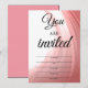 Las invitaciones rosadas salmón tienen hermosos remolinos de pintura para una invitación única para su Soiree, (Fiesta).