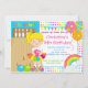 Comience a su fiesta de cumpleaños del chica de la derecha con nuestra huelga brillante y colorida linda encima de una cierta invitación de la fiesta de cumpleaños de los bolos de la diversión que ofrece a un chica rubio lindo en un aliado de los bolos con bolas rosadas y anaranjadas del globo y de bolos fijadas en un fondo lindo de los lunares con el empavesado amarillo, verde, de las azules turquesas, del rosa y del naranja. La parte posterior de la invitación ofrece un color púrpura de coordinación. Completamente adaptable por usted con su información. ilustraciones del ©JW